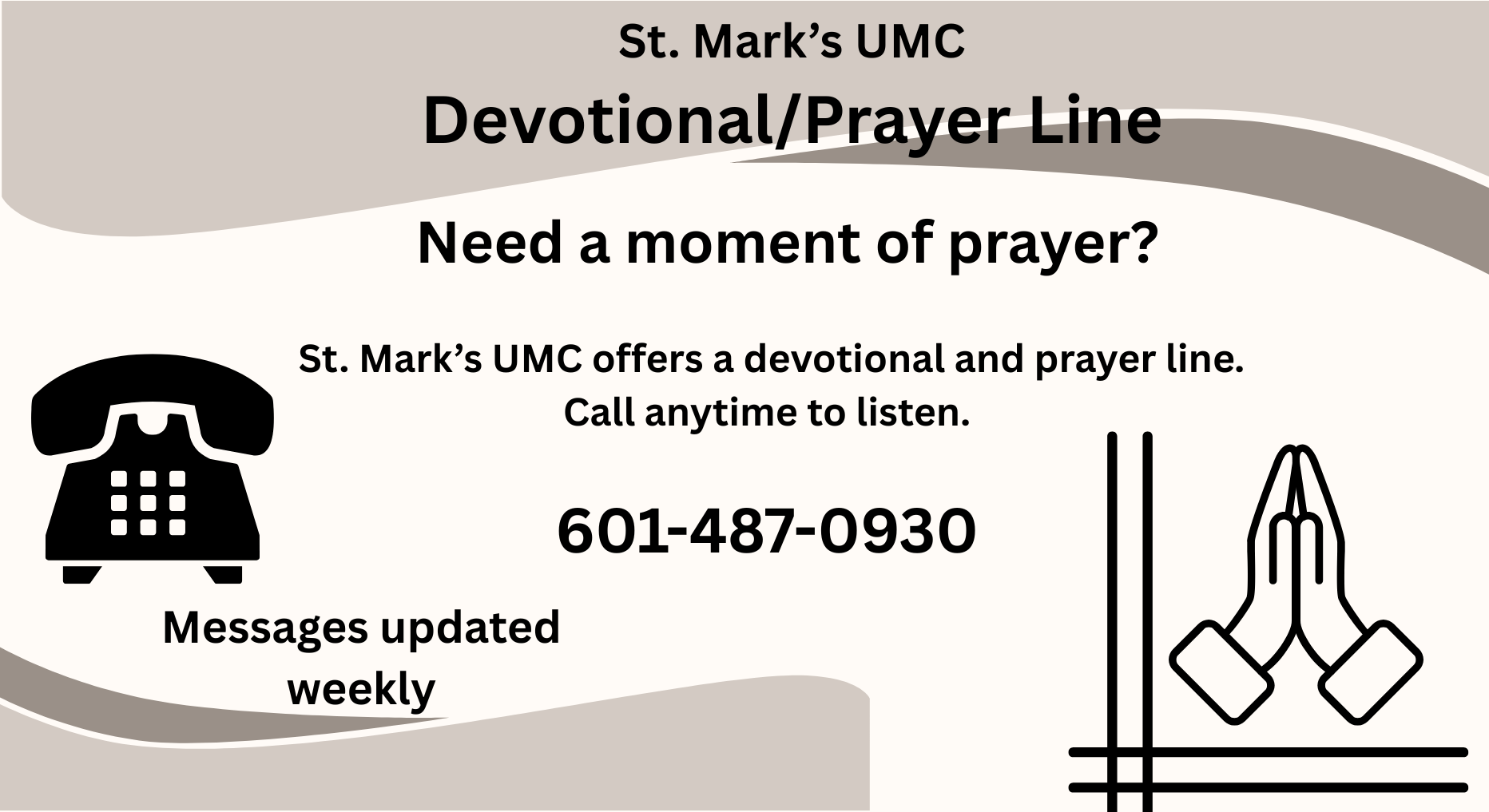 The St. Mark’s Church Staff, Mission and Prayer teams are here, just as they always have been, and will continue to be.